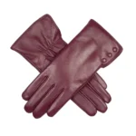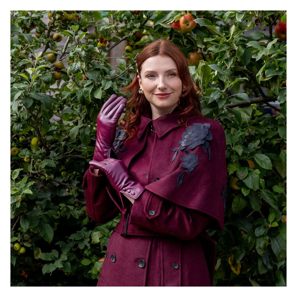 Old-school elegance meets modern comfort with our Agata leather gloves. Crafted from the finest hairsheep leather, these gloves offer a soft, supple, and smooth feel that’s as luxurious as it is durable. Stylish details include two decorative buttons that add a touch of vintage femininity, complemented by a side vent and an elasticated wrist to ensure a comfortable, secure fit. Measuring mid-arm for extended coverage, the Agata gloves provide extra warmth while maintaining a sleek silhouette. Designed for cold weather, they feature a cosy faux fur lining that delivers warmth without sacrificing style. The gloves are also touchscreen compatible, allowing you to use your mobile phone without removing them, and water-resistant to keep your hands dry and protected in wet conditions. Choose from five elegant colours – classic black, mocca, and navy, alongside fashion-forward damson and saddle – to perfectly complement any winter wardrobe. A perfect blend of style, comfort, and functionality, these gloves are a must-have accessory for the colder months.