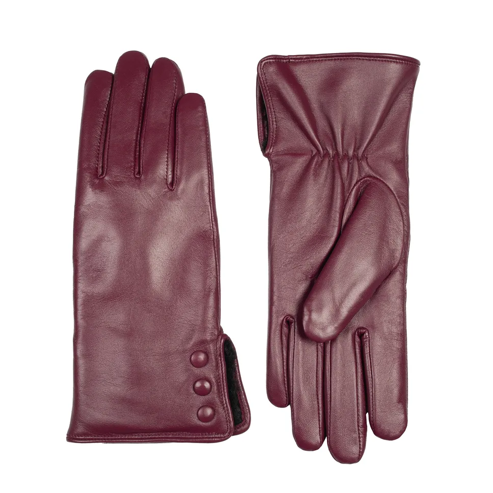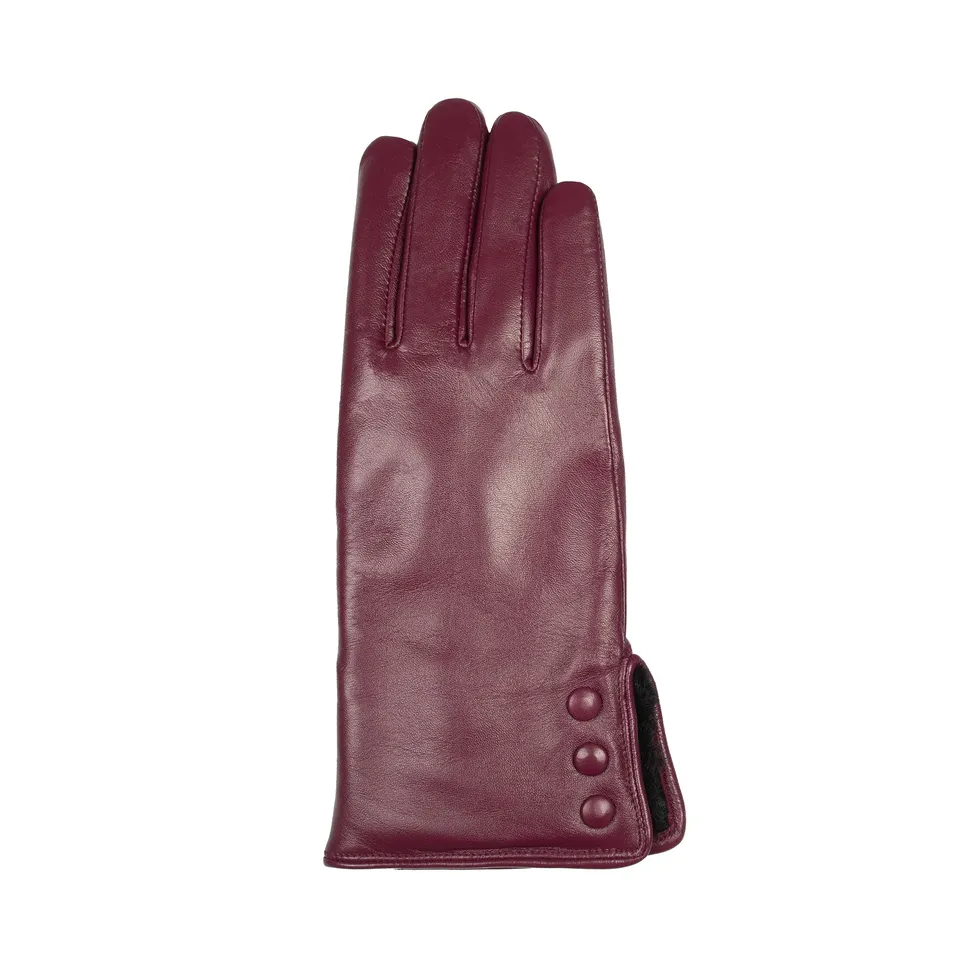Women’s Touchscreen Water-Resistant Faux Fur-Lined Leather Gloves with Buttons
