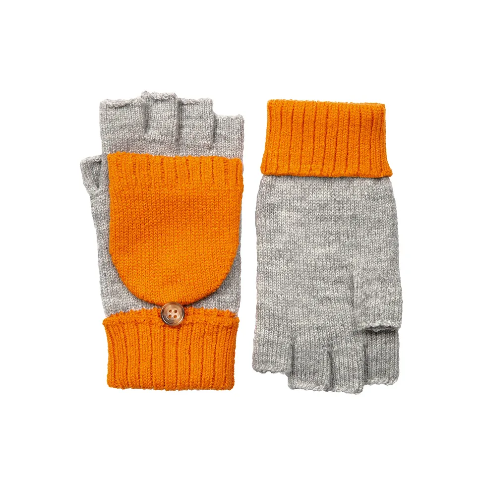Enjoy the very best of both gloves and mittens with our clever two-in-one. Use as fingerless gloves for full freedom of movement or dial up the cosy comfort with the mitten flap. Simply unbutton the mitten hood to wrap your fingers in instant winter warmth. These knitted gloves offer unbeatable versatility and also look the part thanks to the bold two-tone design. Choose from two eye-catching colour combinations – cool navy blue with vivid emerald green or elegant dove grey with zesty orange. Why choose between gloves and mittens when you can benefit from both in one handy item? The perfect solution for busy lives and seasonal weather changes.