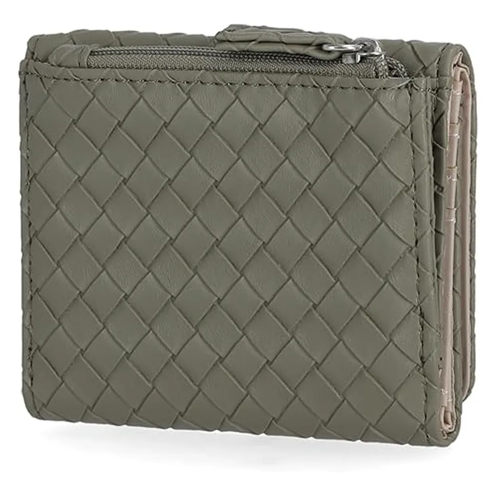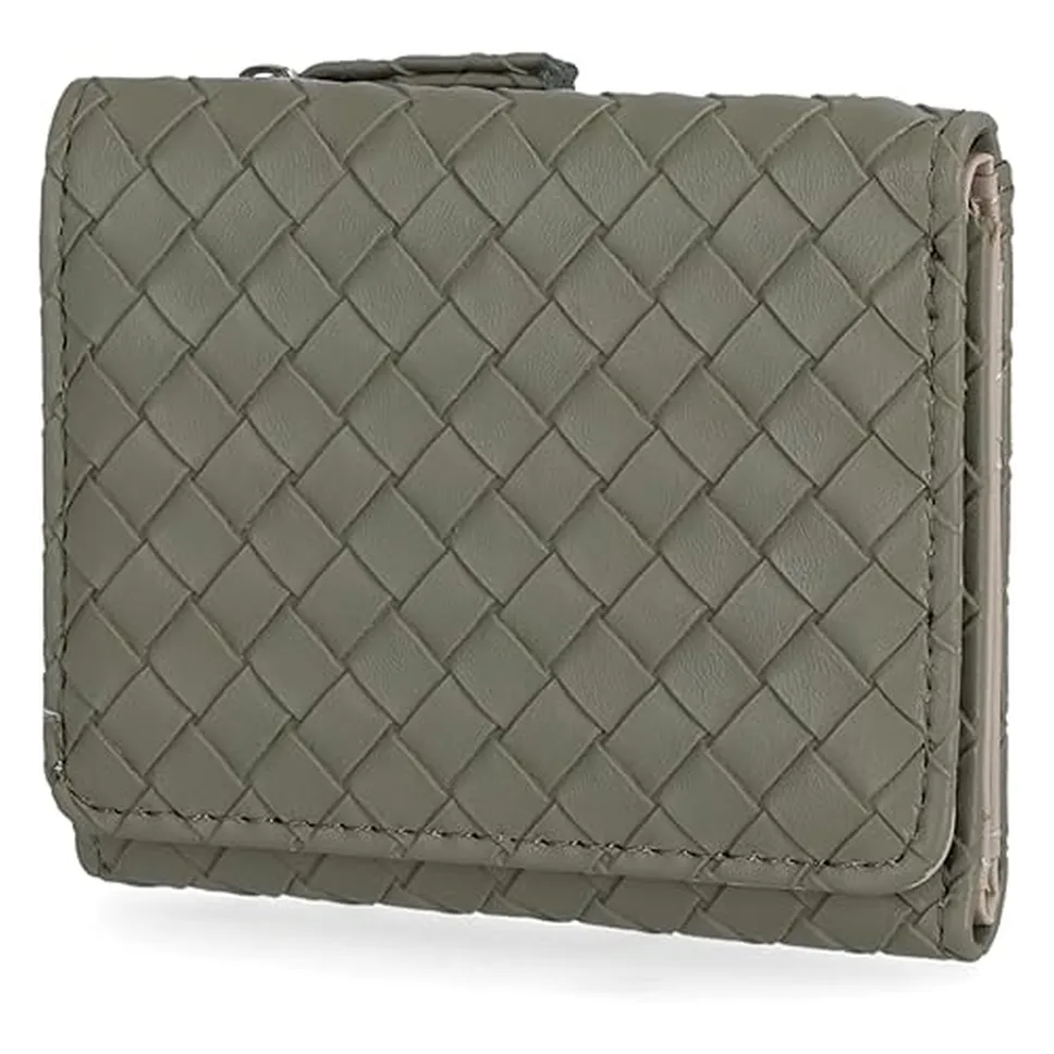 Mundi Anna Indexer Small Wallet for Women, Slim Credit Card Holder with Zipper Coin Pocket, Bifold Compact Womens Wallet with ID Window in Sage Woven